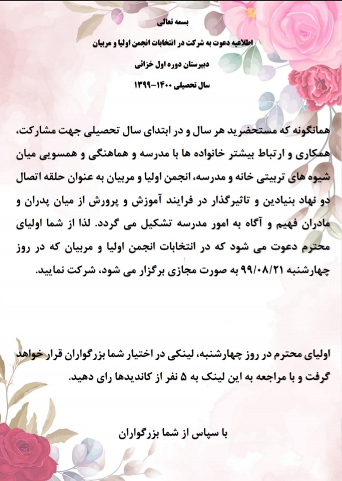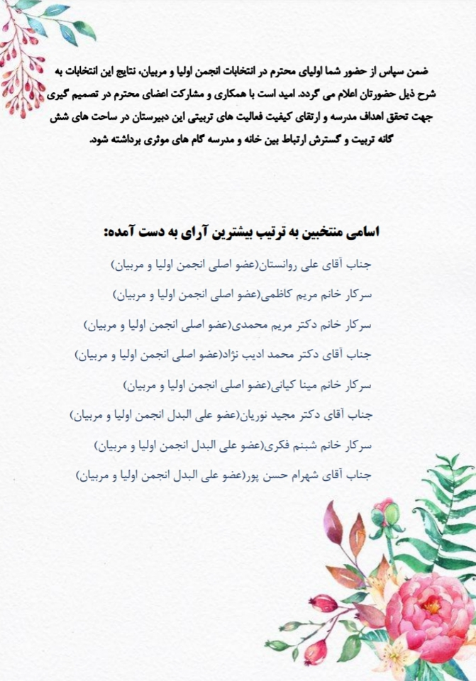 انجمن اولیا و مربیان سال تحصیلی 98